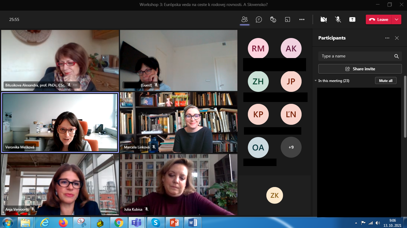 The UNIZA CHANGE team planned a comprehensive "Series of workshops on Gender Equality for Horizon Europe". The online events were designed for management teams of Slovak universities including the staff who will be in future involved in the drafting of the GEPs. All four workshops were held in October 2021. The aim of the series was to guide in GE less experienced institutions through this topic, starting with providing of the theoretical basis, through summarizing what has been done so far at Slovak universities, considering the European context (focus on GE in past and current funding programmes) and finally, including recommendations for the GEP preparation. Participants had opportunity to share their ideas in small discussion rooms.