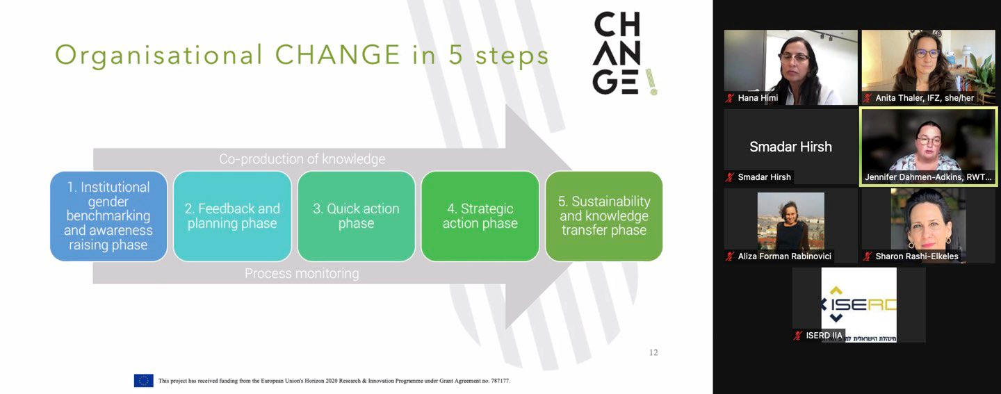 CHANGE members Dr. Anita Thaler (IFZ, Austria) Jennifer Dahmen-Adkins (RWTH, Germany) and Dr. Hana Himi (BBC, Israel) were among the presenters in an online webinar about Gender Equality Plans (GEPs) organized by ISERD — Israel-Europe R&D Directorate in the Israel innovation Authority on October 25, 2021. According to the new eligibility criterion in Horizon Europe,"Gender Equality Plan" are mandatory for [...]