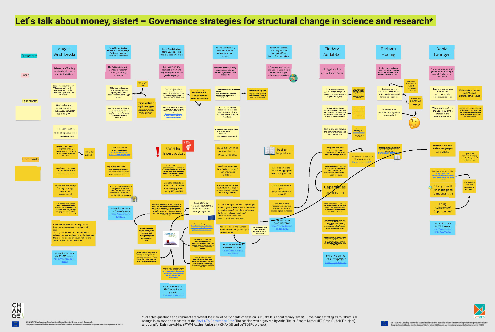 The upcoming research funding programme ‘Horizon Europe' will make GEPs an eligibility criterion of proposals. This is one example of a governance strategy where the allocation of (monetary) resources — in terms of funding — is linked to fostering gender equality in European science and research organisation. In a session at the annual STS conference dedicated to this very topic our CHANGErs Anita Thaler, Sandra Karner (IFZ, Austria) and Jennifer Dahmen-Adkins (RWTH Aachen, Germany) invited gender researchers to co-create knowledge about how financial governance strategies can be used to [...]
